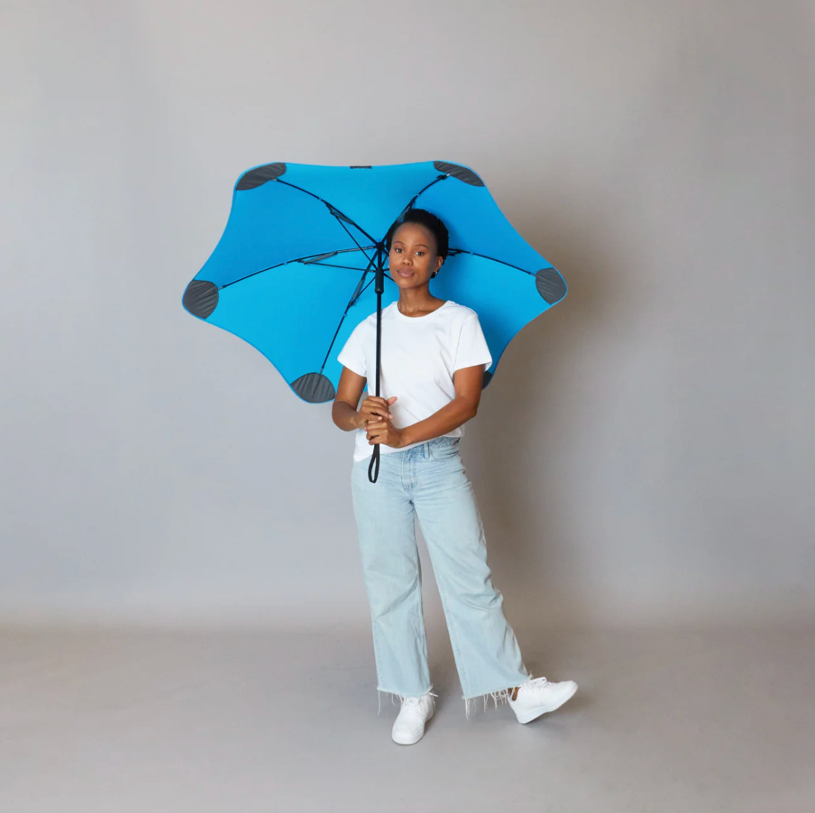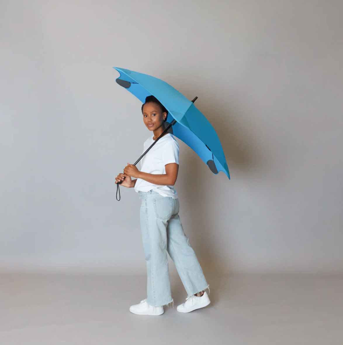 BLUNT Classic. Den traditionelle paraply fra BLUNT er perfekt til dig, som værdsætter stilen og oplevelsen af godt design. BLUNT Classic er en original stilfuld paraply i fuld-størrelse, fuld-længde. Med de patenterede Blunt™ stivere og det ergonomiske håndtag og automatisk åbning giver BLUNT Classic dig den dækning i dårligt vejr, der gør den til den uundværlige følgesvend og rejsevenlig paraply på blæsende og regnfulde dage.