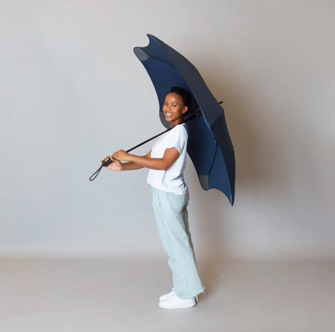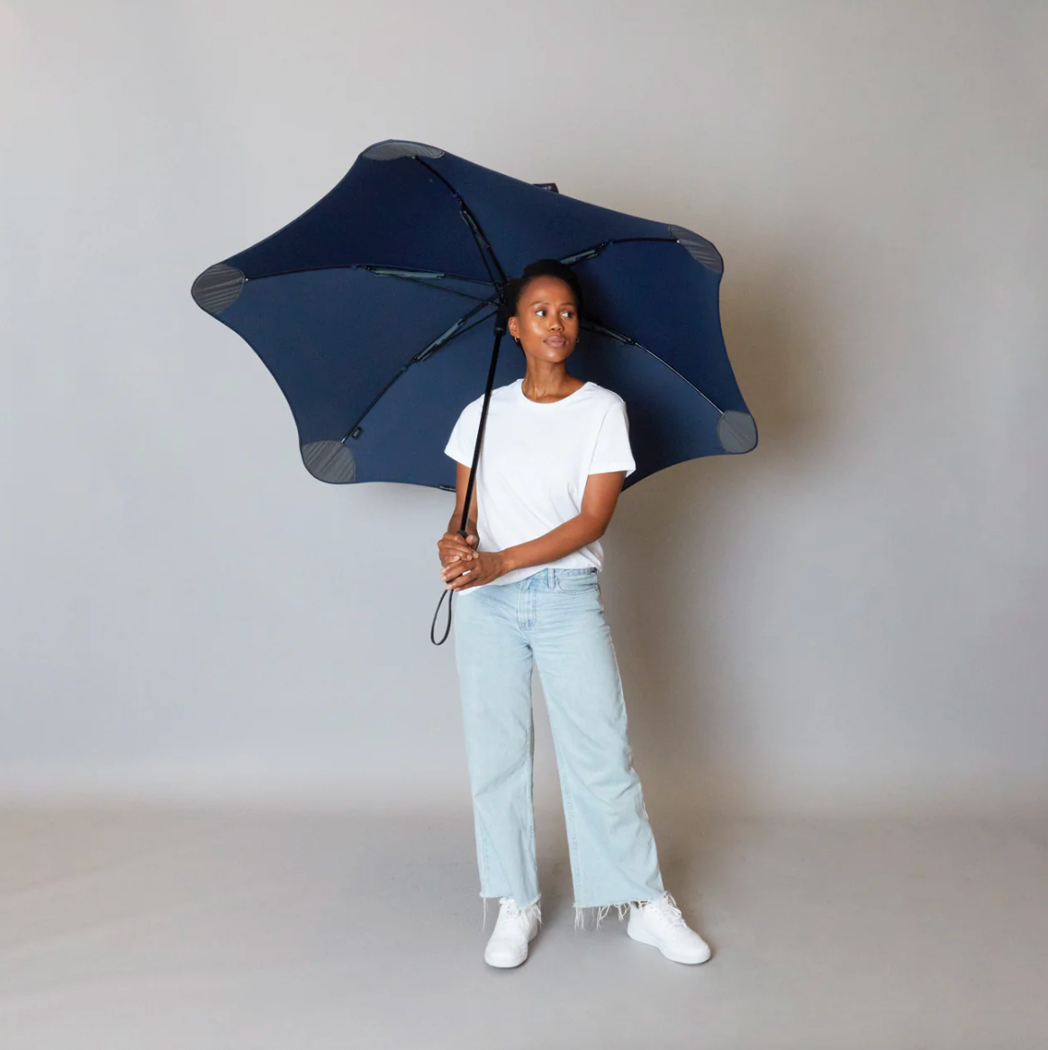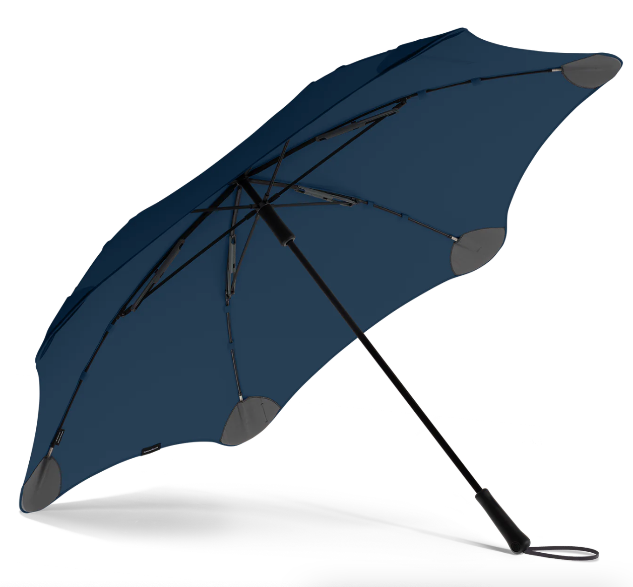Den største paraply i fuld længde i Blunt™-serien, med en stilfuld håndtagsrem, er BLUNT Exec stor nok til mindst to personer, hvilket gør den ideel til regnfulde kaffeture om morgenen eller frokostmøder uden for kontoret. Paraplyen fås i flere farver og leveres med et sort bæreetui.