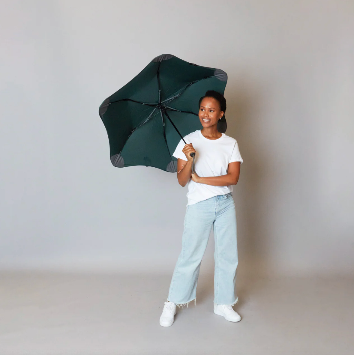 Med en længde på kun 37,5 cm kan du hurtigt trække din BLUNT op af håndtasken eller dokumentmappen, når vejret overrasker dig. Leveres med et farvekoordineret etui.
