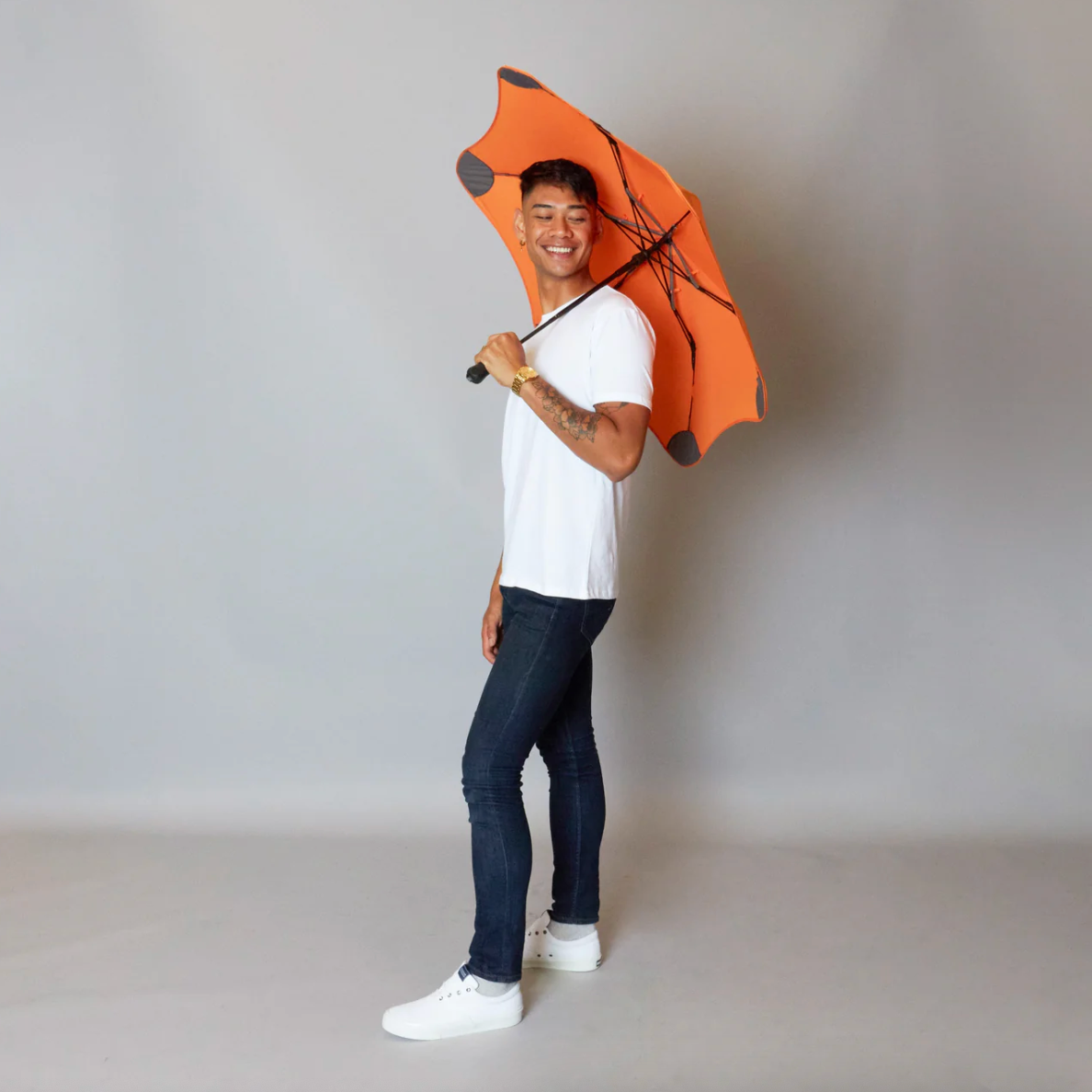 Fordi BLUNT paraplyerne er testet til ekstreme forhold. BLUNT har produceret en paraply hvor man ikke går på kompromis med ydeevne, og derfor  skabt den stærkeste, mest aerodynamiske og beskyttende paraply på markedet. Blunt™ paraplyer er blevet vindtunneltestet til en kategori 1 orkan (115 km/t)*.